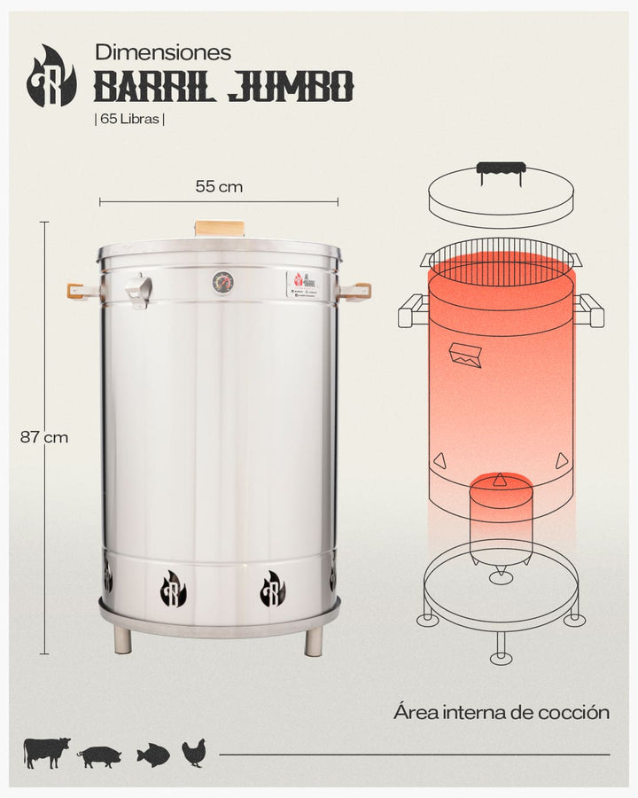 ✅ Barril Jumbo de 65 lb – Construcción premium en acero inoxidable