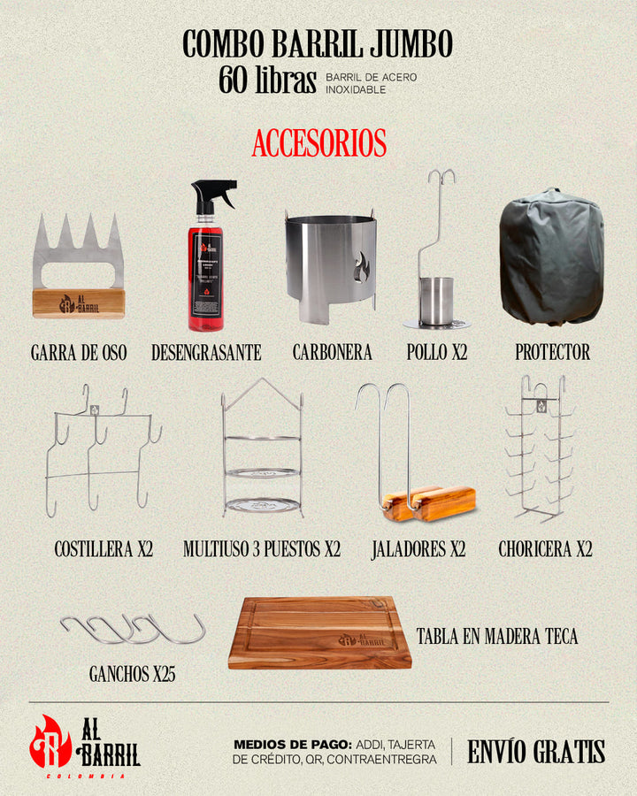 COMBO BARRIL ACERO JUMBO - 65 LIBRAS🔥